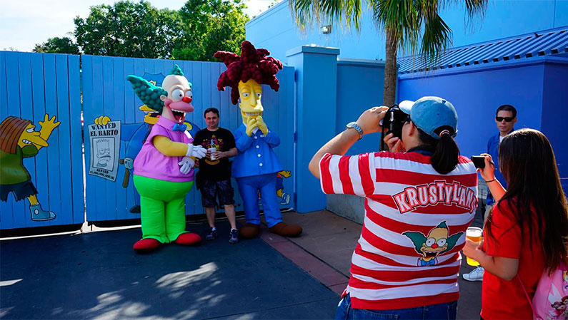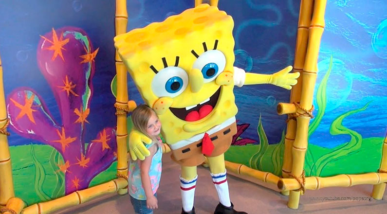 Meet and Greet dos personagens: sempre terá também um fotógrafo do parque disponível para clicar esse momento inesquecível da viagem. Você encontra esses fotógrafos tanto em Meet and Greets já estabelecidos (como o do Bob Esponja na Universal e o do Grinch durante o Natal no Islands), como para personagens que surgem durante o dia aleatoriamente no parque (roaming characters). O importante é: surgiu um personagem? Pode ter certeza que o fotógrafo estará por perto.